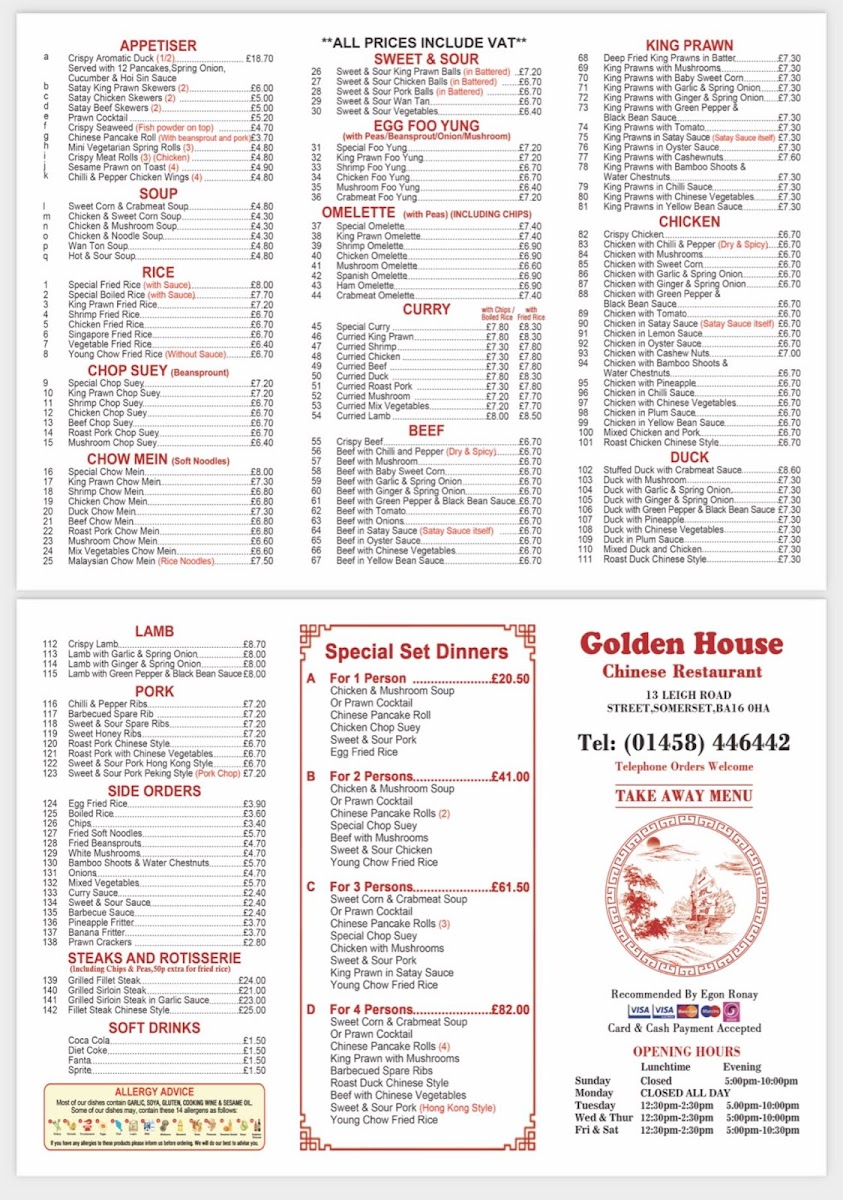 Welcome to Golden House Chinese Restaurant, a culinary treasure nestled in the heart of Street, UK. Here, the menu showcases an array of delightful choices, appealing to both traditionalists and modern palates.